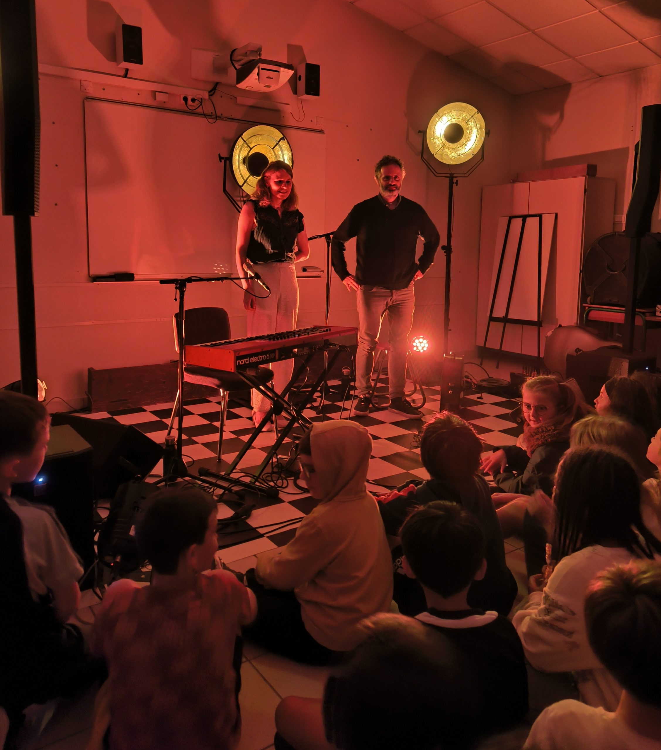 Jeudi 18 septembre, les 130 élèves de l’école La fontaine ont eu la chance d’assister à un concert en direct dans le cadre du festival À l’Abordage.